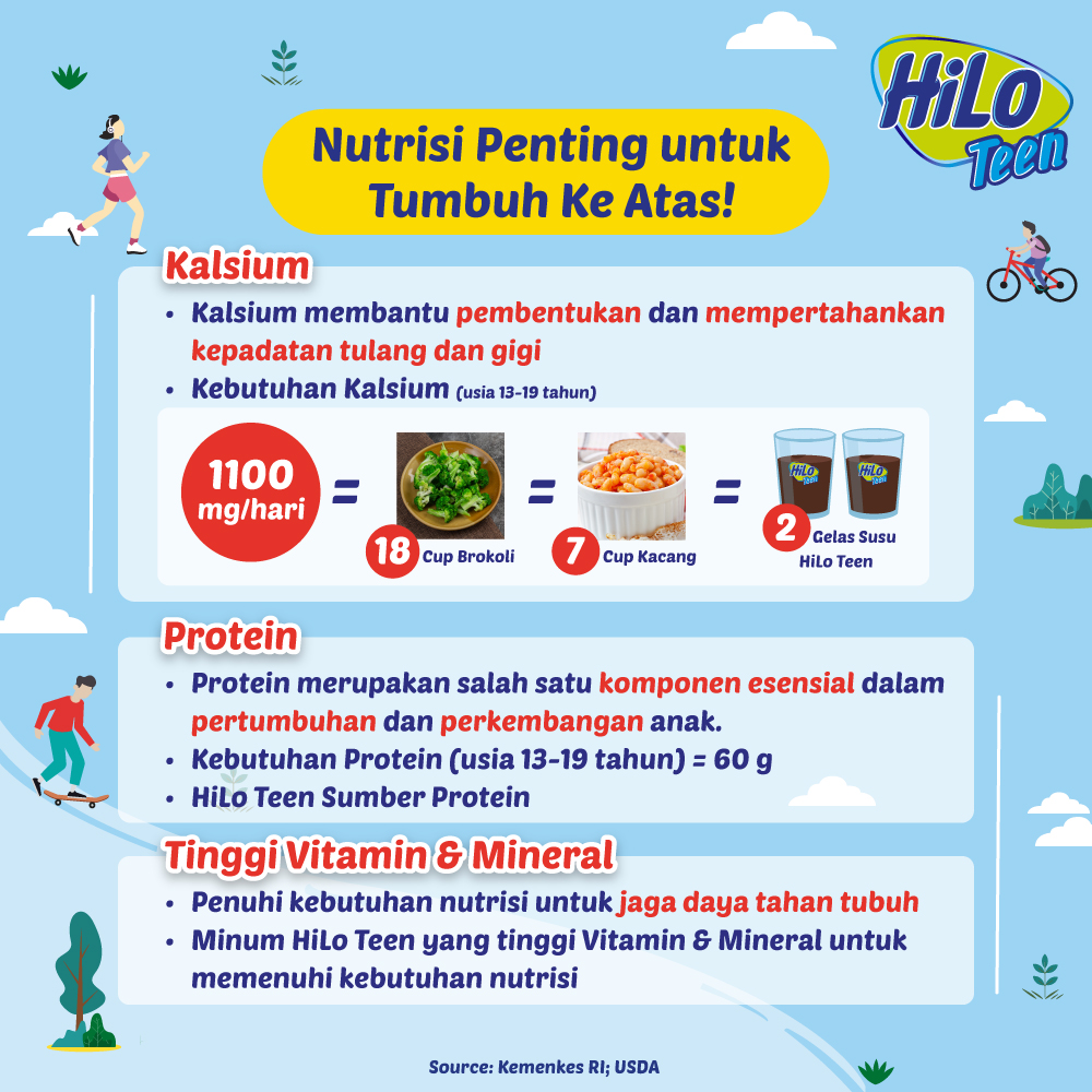 Agar tidak menjadi masalah di hari depan tetap jaga konsumsi karbohidrat ini agar tidak berlebihan. Susu memiliki kandungan kalsium yang. Susu HiLo terkenal dengan slogan Tumbuh itu ke atas Bukan ke samping Dengan slogan tersebut kita akan langsung tahu bahwa susu HiLo ini merupakan susu penambah tinggi.