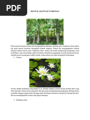 Pengguguran daun pada musim kemarau juga dilakukan oleh tumbuhan lain seperti mahoni dan kedondong walaupun tidak. Adaptasi Tumbuhan yang hidup di air dan lingkungan lembap. Sebagai salah satu bagian dari.