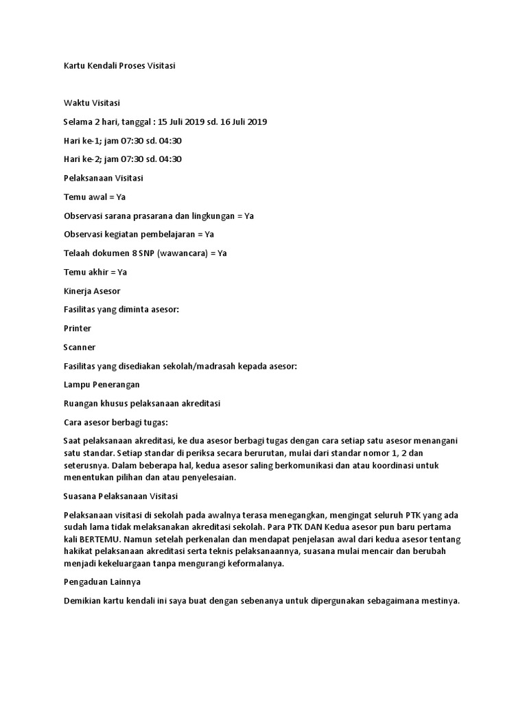 Kartu Kendali Proses Visitasi Pdf