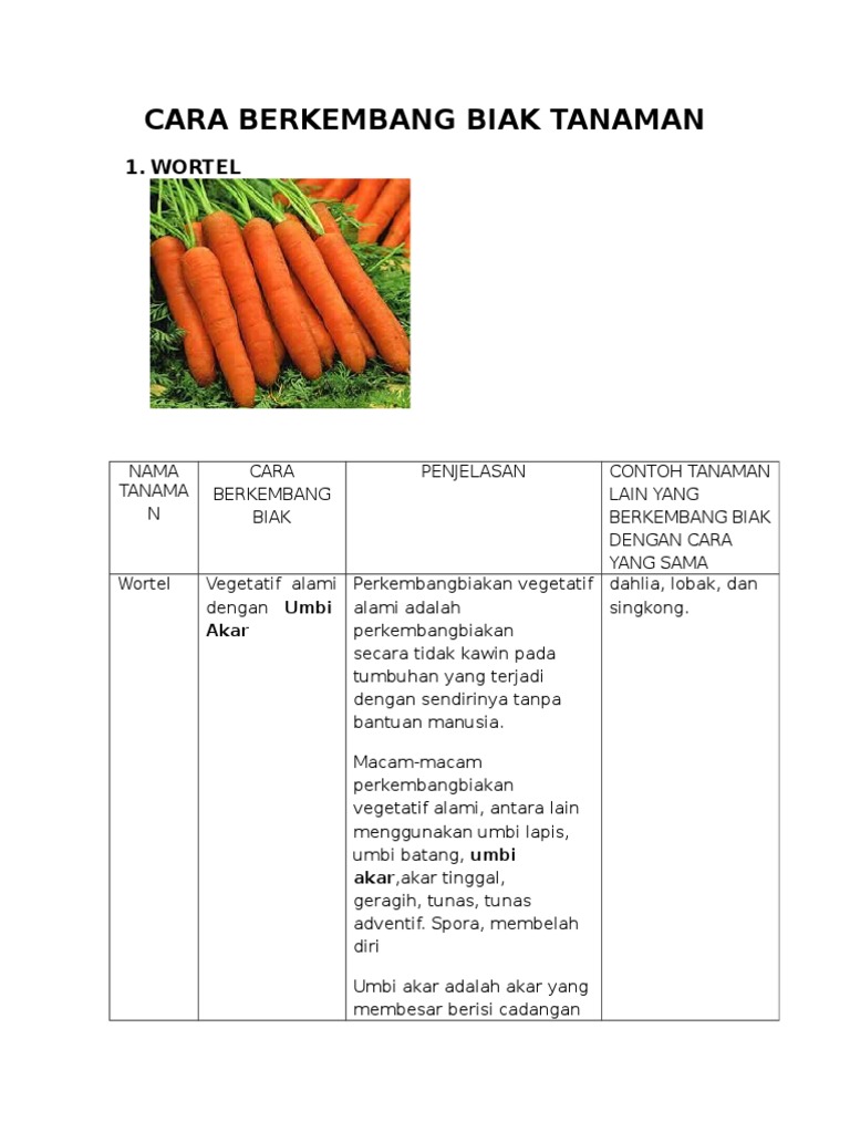 Cara wortel berkembang biak secara generatif. Jenis tumbuhan yang berkembang biak secara vegetatif alami dibedakan menjadi. Tumbuhan berkembang biak dengan dua cara yaitu secara vegetatif dan generatif.